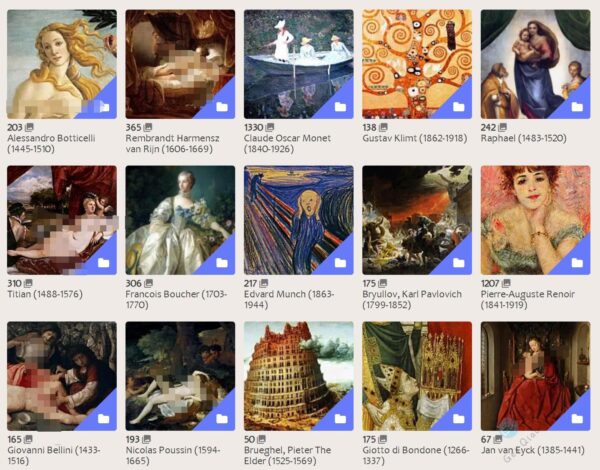 每幅图都有名称,而且点进去还有介绍和画家简介。