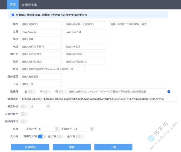 前面的基础你学会了,现在就可以依据前面的规则批量生成密码了。