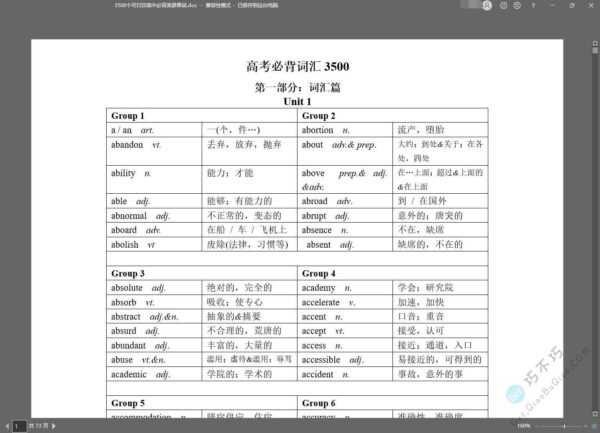 文档共计12页,一共有1000个单词,每个单词都有音标和中文翻译,下面截取前5页内容,实际文档是没有水印的,无需担心。